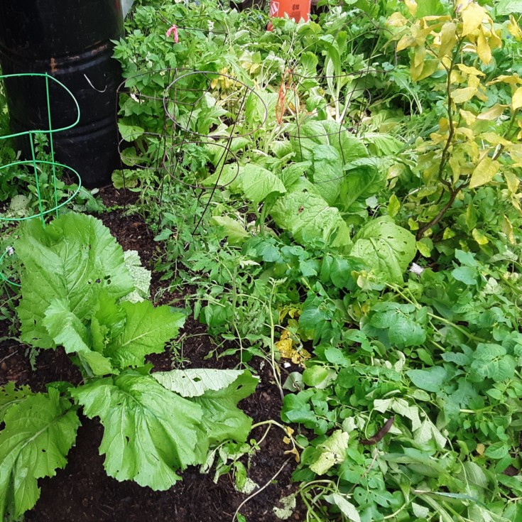 The tomato patch last year. I pulled one of these scraggly plants up and moved it. I didnt dig it because I didnt want to damage the remaining ones. Just yanked it and at that point it was not soft soil so most of the roots broke.
