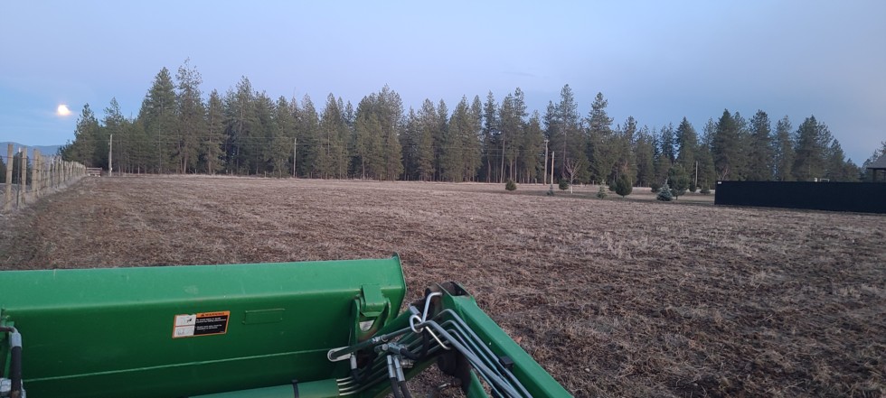 Ripping the old played out alfalfa pasture with our rebuilt antique spike harrow under a full moon.
