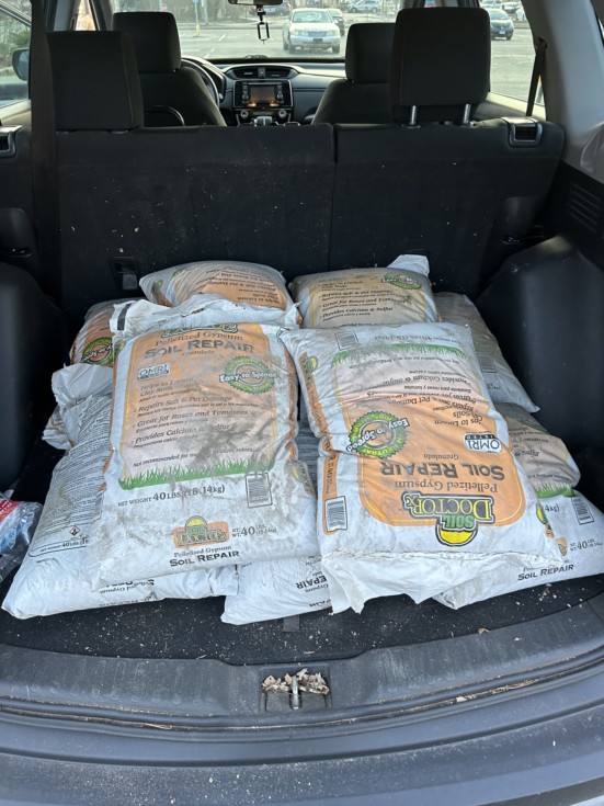 400lbs of gypsum. I may add another 200ish more as per Matt's recommendations. I have been playing with the Langley soil calculator and it seems like adding a bunch of calcium will help a lot of my ratios move in the right direction.