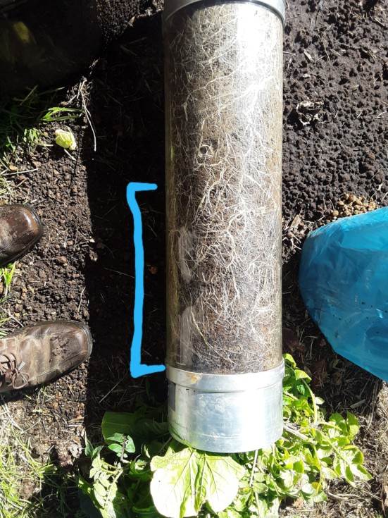 The last couple times I watered this tube the water only went about halfway down. The bottom of the tube is almost bone dry and the moisture could only have been removed by the roots (it cant go through the glass). The roots are extensive. A couple of things to learn here 1) drought will stimulate flowering 2) a fast heavy watering would deliver the water deeper and not necessarily oversaturate the soil or cause disease... and a couple moderate to light waterings could deliver water to about 1 ft depth yet fail to deliver any water below that level. It helpful for me to see this because last year I think there were some dry spots in the gourd patch. Interesting to see how this happens.
