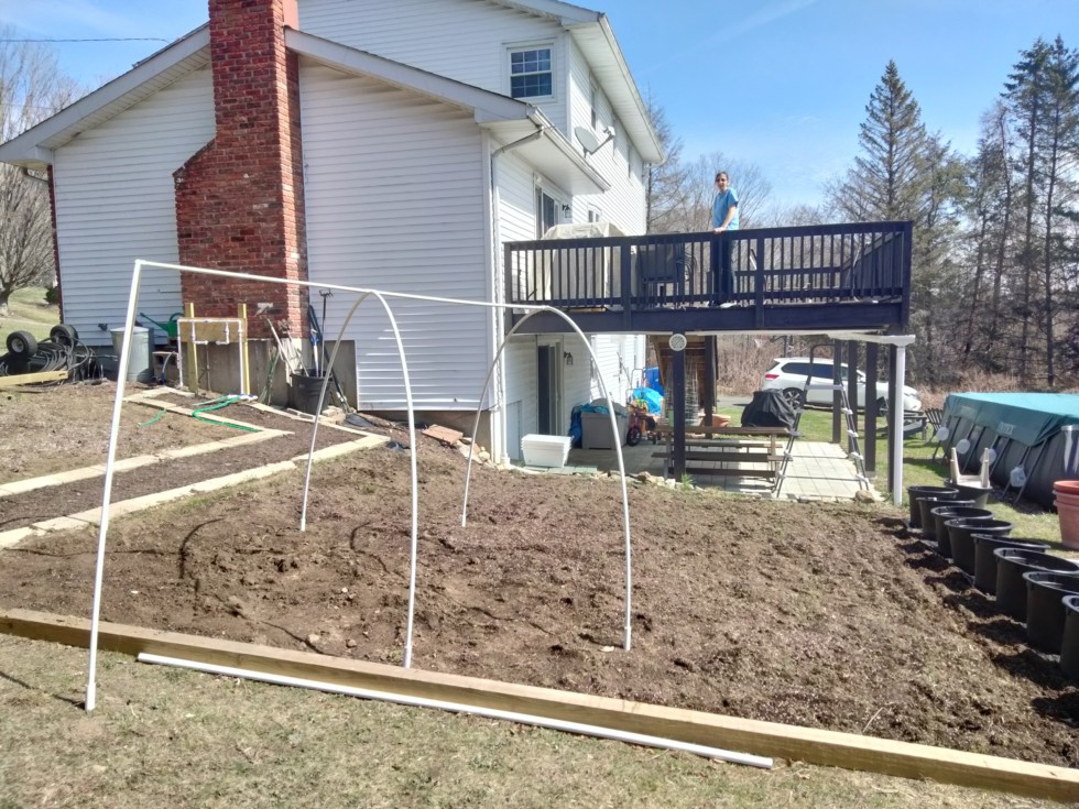Hoop up. Going to leave as is until closer to pumpkin being out there....Boss on the deck wondering why I'm spending so much time outside in the patch lol.