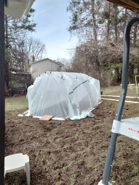 Hobo structure is up lol. I am going to have to find a better system next year. Maybe a pop up house or something who knows. Nice and toasty in there though.