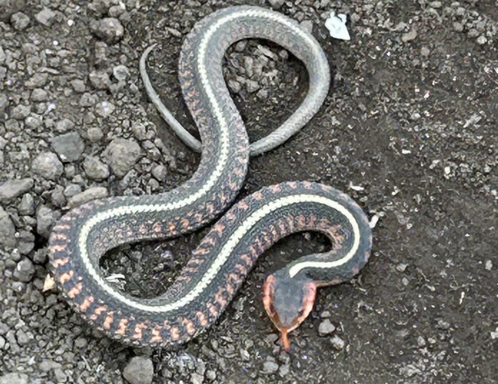I got a bit of a rush today when I picked up a walking board & had this little snake strike at me! It is an Oregon Striped Garter Snake. It has a diamond shaped head, which often means they are venomous. These snakes have a mild venom which is not dangerous to humans.