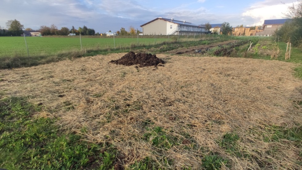That was the patch in fall 2024: manure, compost, peat and straw were spread. A cover crop was also sown.