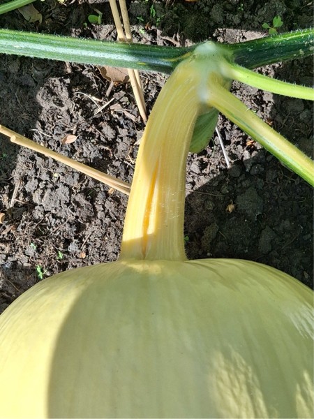 The pumpkin is growing and has quite the long stem which will help with any stress issues