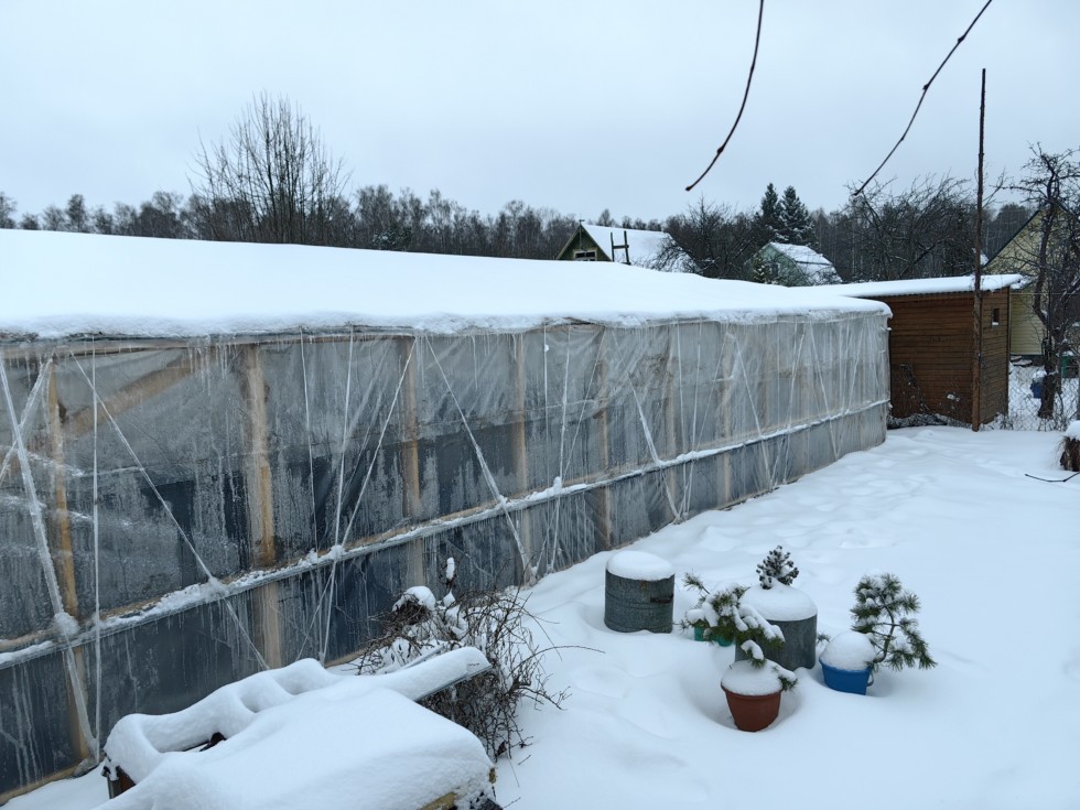 My greenhouse was covered with snow. I wasn't prepared for such a snowfall, but everything seems to be fine.