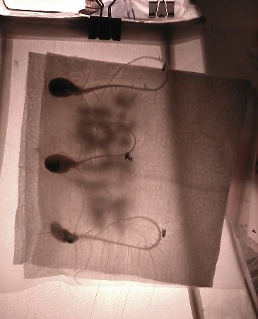 'Dance, my pretties. Dance!!!' It is just fun to 'turn the tables', lol. Please note that the bottom-most seedling is starting to eject from the seed 'casing' due to actual leaf growth. I had not kept track of what the LATERAL roots are up to with this disorientation of the rest. Hmmm... I suspect that this might be a way to see which seed is the most vigorous before committing any to placement in the patch, like if a child speaks sooner than normal. 'Hey, Pa, where's muh bottle???' Aww, crap... eg