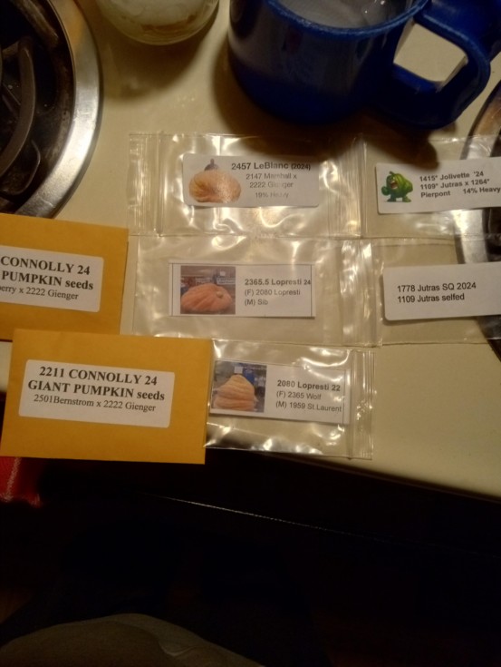Seeds are soaking now. 1955.5 Connolly 2211Connolly 2457 LeBlanc 2365.5 Lopresti 2080Lopresti1778 Jutras squash 1415 Jolivette squash 1370 Lopresti squash. The fun begins!