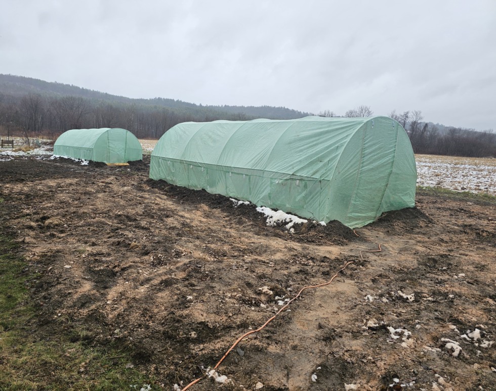 The majority of the snow melted by the afternoon, which gave me a good opportunity to start spreading some azomite.