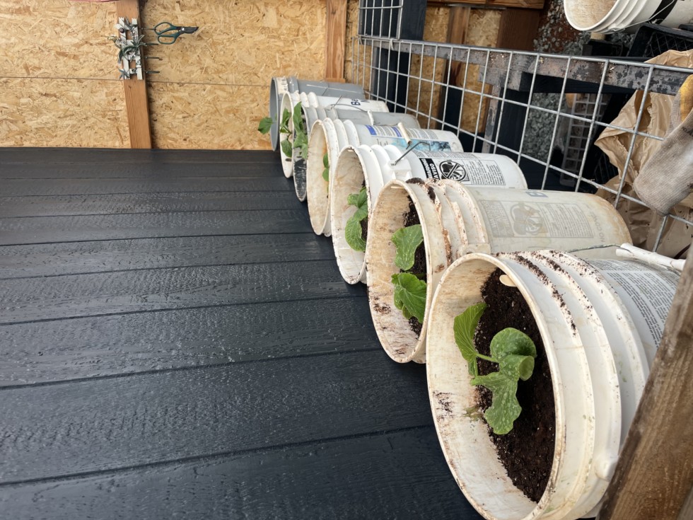 Cucumber beetle trap plants got started mid March and are now scattered around the patch in 5 gallon buckets. We start getting cucumber beetles in early April and I'm now killing hundreds every day. It's no longer legal to purchase imidacloprid or any other neonicotinoids without a commercial applicator license in CA, so this is one tool to hopefully address the problem.