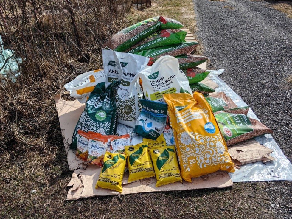 These are the main fertilizers that I will use. This is a local Russian manufacturer of Buisk Fertilizers. There is a complex fertilizer for the soil, water-soluble fertilizers with auxins at once, individual trace elements in chelated form and much more. A total of almost 850 kg.