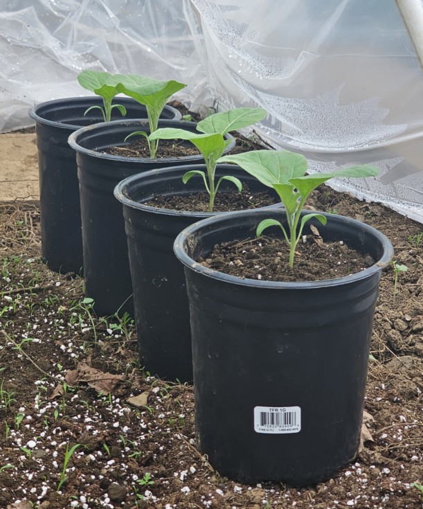 5.6 Bennett Eggplants, all ethylene treated at seed start. Some residual humic acid on the leaves because of some sloppy watering..oops. I'm pleasantly surprised how easy going these plants are to grow!