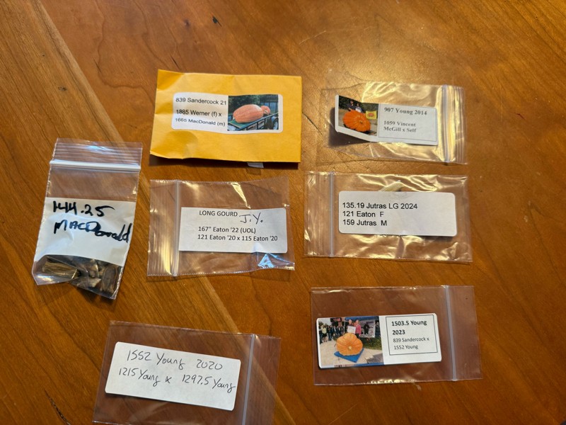The pumpkin and long gourd season has begun. Here are the first round seeds. I am guessing the 907 may not germ but if they do it would be great to mix these older orange genetics in.