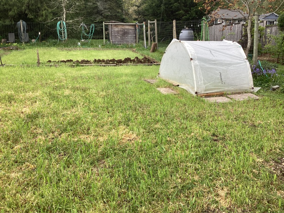 Maybe I'll grow no-till this year.? Likely not but at this point I can see that I'll prolly rototill in stages as I need to. I'll install the larger hoophouse over this hooptie hut where we have new heat cables, small heater, fan and grow lights ready to go.