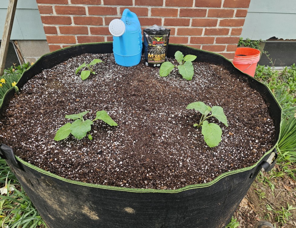 Figured the best companion plant for an eggplant is another eggplant. Four 5.6 Bennett's in 150 gallons.
