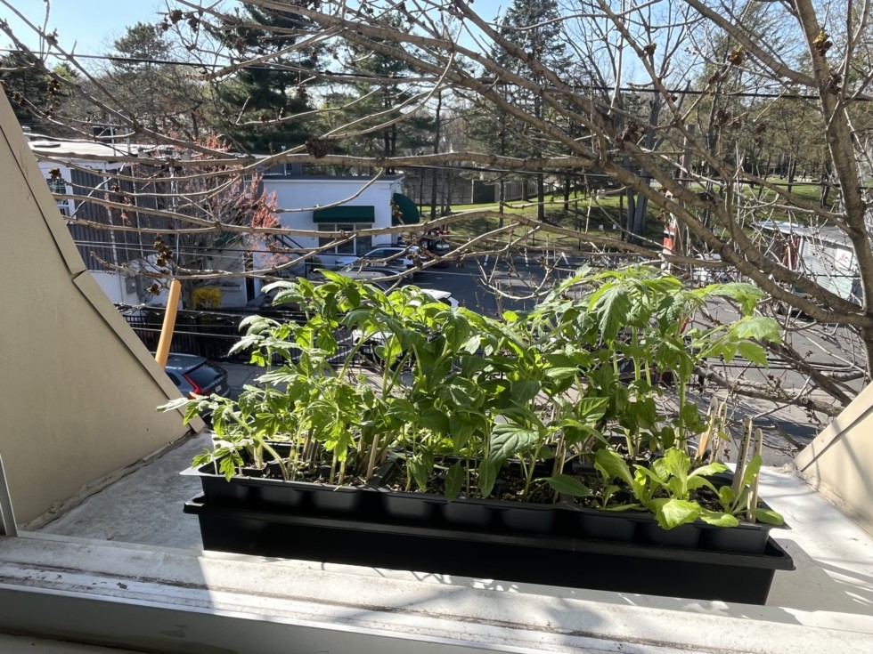 The veggies are off to a great start. I want to do a better job of gradually hardening this year. Last year I left them outside in the bright sun too long early on and lost a few plants.
