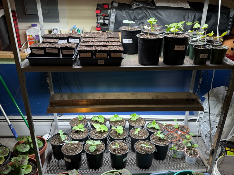 We also started 22 giant tomato seeds in hopes to fill 18 spots but if more germ we will plant them outside. So far we have 14 pumpkins and 6 long gourds started for just 6 total spots. Typically, we end up giving away most of our backups to growers who have had bad luck.