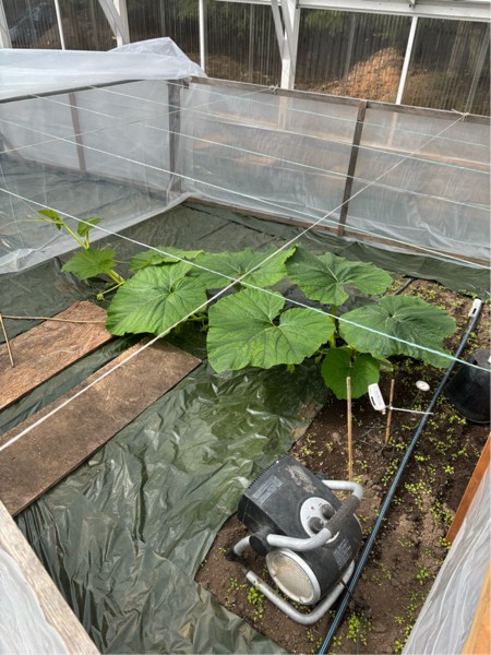 2177 Ford now reaching the end of the 1st section of mini gh, I like to do this as then I only heat the air space thats needed, using the 750 watt setting on the heater, of coarse the radiant ground heat also helps