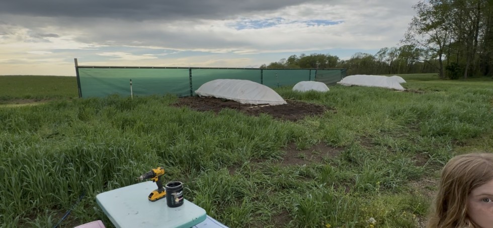 Spent another day staking and reinforcing the wind damaged huts. Getting really tired of these huts. I also started putting up the wind fence on the windy west side of the patch which helps alot.