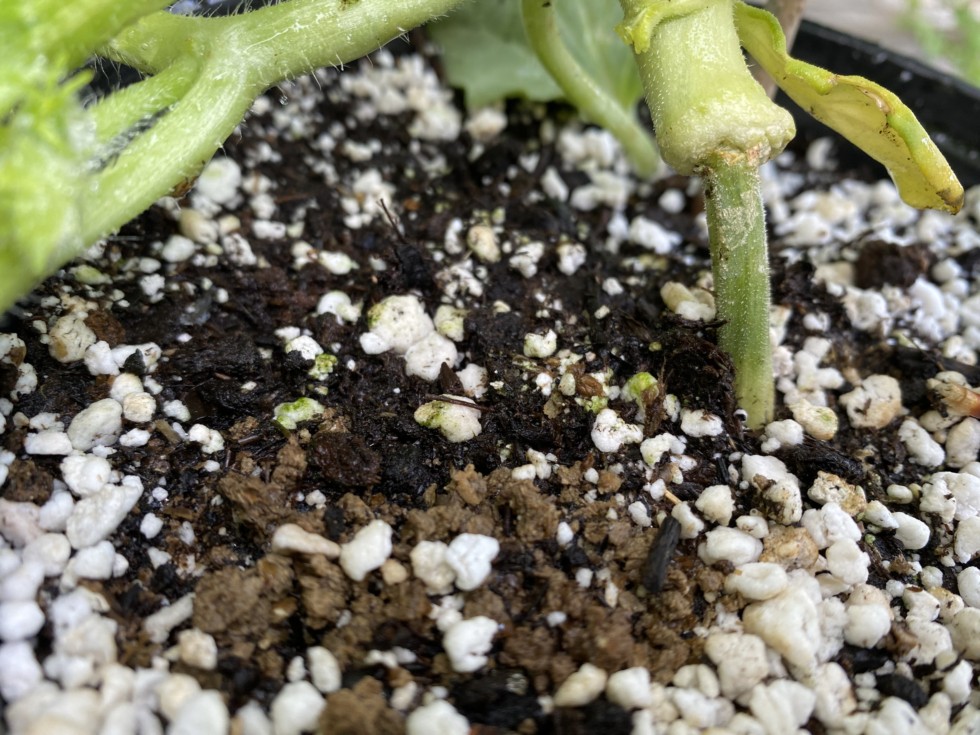 In this picture, we see the different rates of growth in a grafted cantaloupe. The cantaloupe is the 56.2 English and the root stock is a kiwano melon it's supposed to be a good route stock for cantaloupe. We'll see.