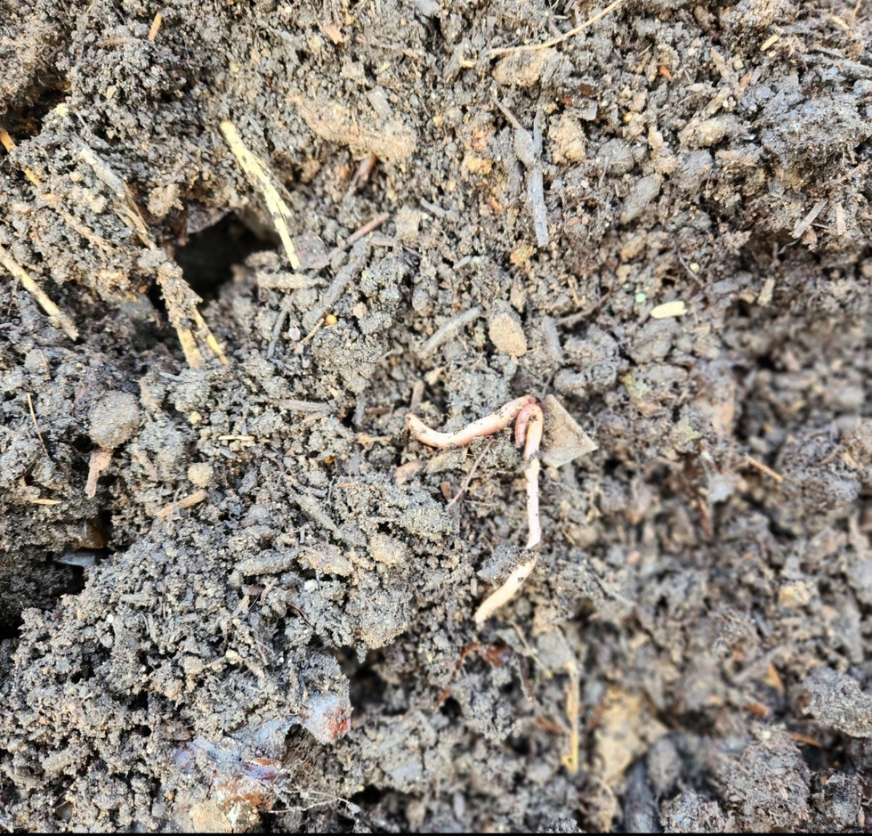 . Lots of worms in the bedding . Lots of rain, with more coming tomorrow . Too wet to transplant until it stops raining a couple of days