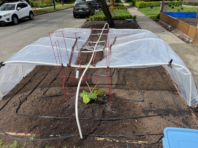 Will have to work on this hoop house for the boulevard 2183 Mendi. It will do for now until I can improve the structure before the rain in a couple days. I'll throw some tarps over at night to keep it warm inside.