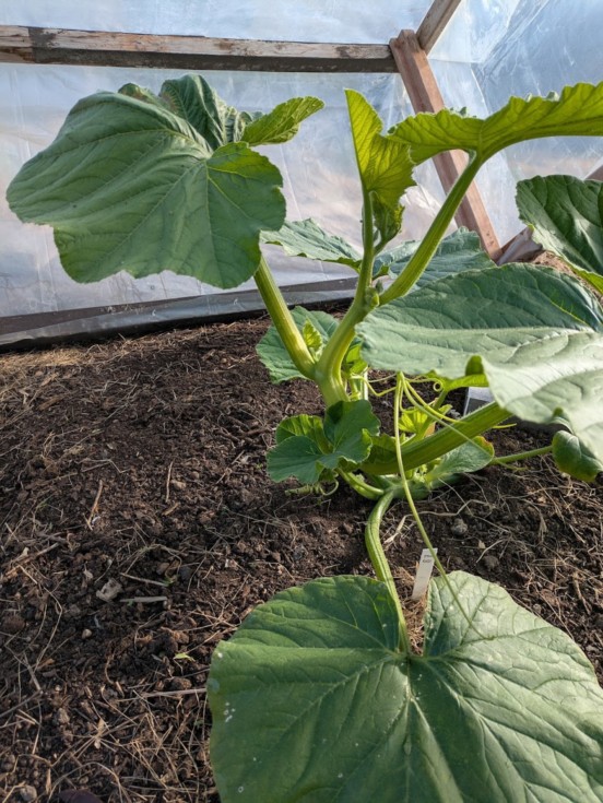 This one, however, is trying to grow straight up or even back on itself. Any ingenious idea out there how to rectify this without breaking the main?