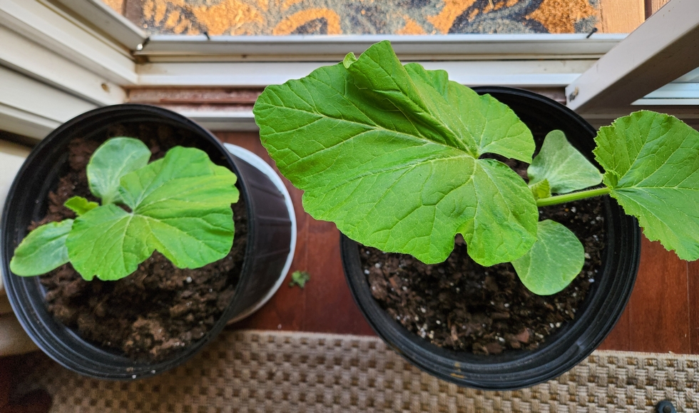 The plant on the right is going in the ground on Friday at mid-morning.
