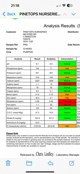 Our labs are making a right mess of our results so please ignore the Sulphur and Iron.