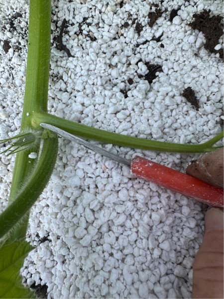 I use a knife to flick out the small side shoots and as a bonus this one's orange which helps me find it.