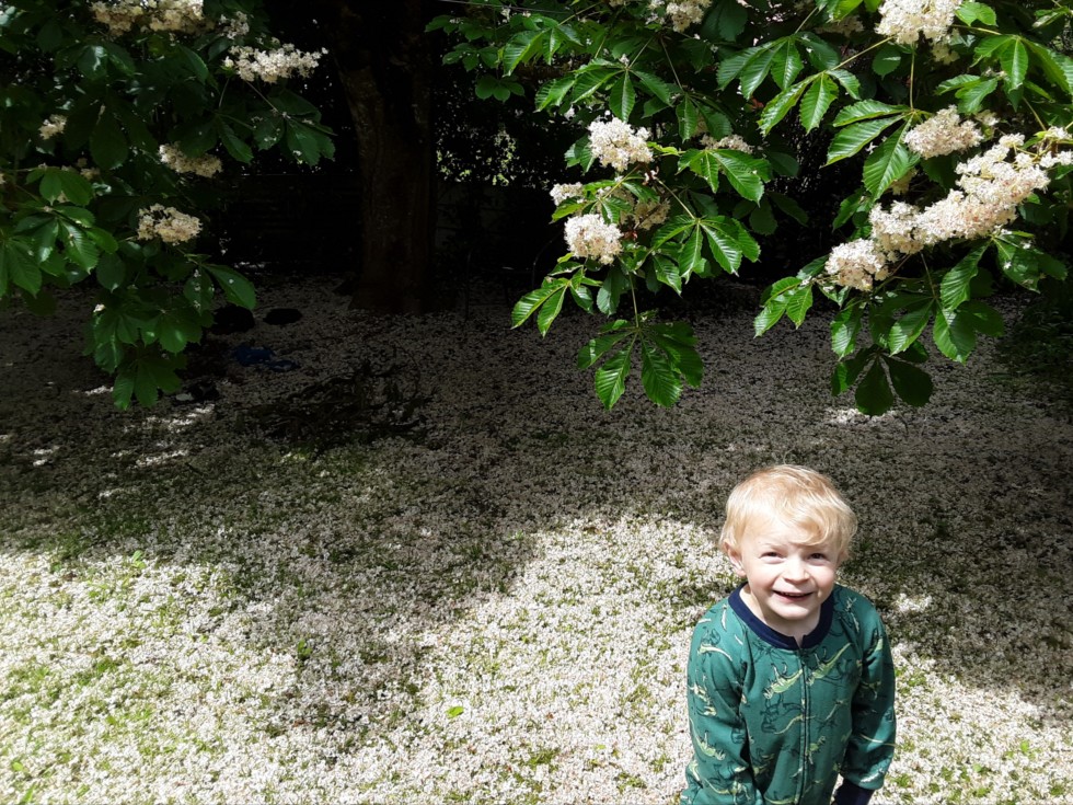 I looked out the kitchen window and briefly though it had snowed. It was an extra thick layer of horsechesnut blossoms.