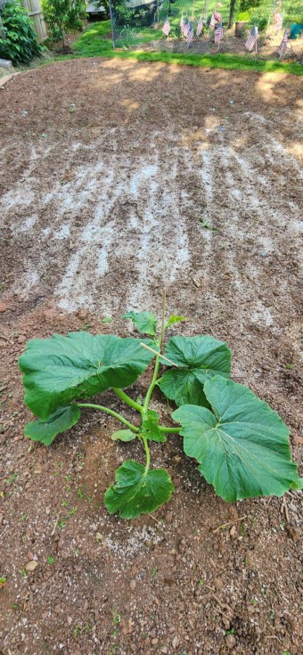 Today marks 1 month old from seed sprout which was April 20th and transplanted outside April 28th at 8 days old. No hoop houses or cables strictly mother nature. Noticed cucumber beetles yesterday which I sprayed the plants. Some wind damage to the leaves but the stong west winds we had past 2 days helped the plants lay down finally. A bit weathered but not horrible. Second plant is close to this size and started to lay down also.