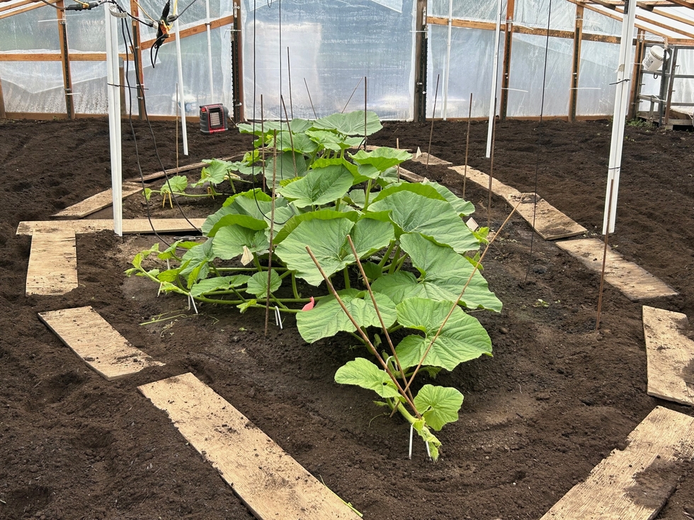I tilled my small greenhouse today one last time before I start putting in my t-tape lines. Both of these plants had another plant next to them until it was culled and you can see that the secondaries are smaller on the side where the other plant was growing. Both of these plants have really taken off after their roommates were culled! The 2301 Pugh is on the front side & the 2069 Stelts is growing toward the back of the pic.