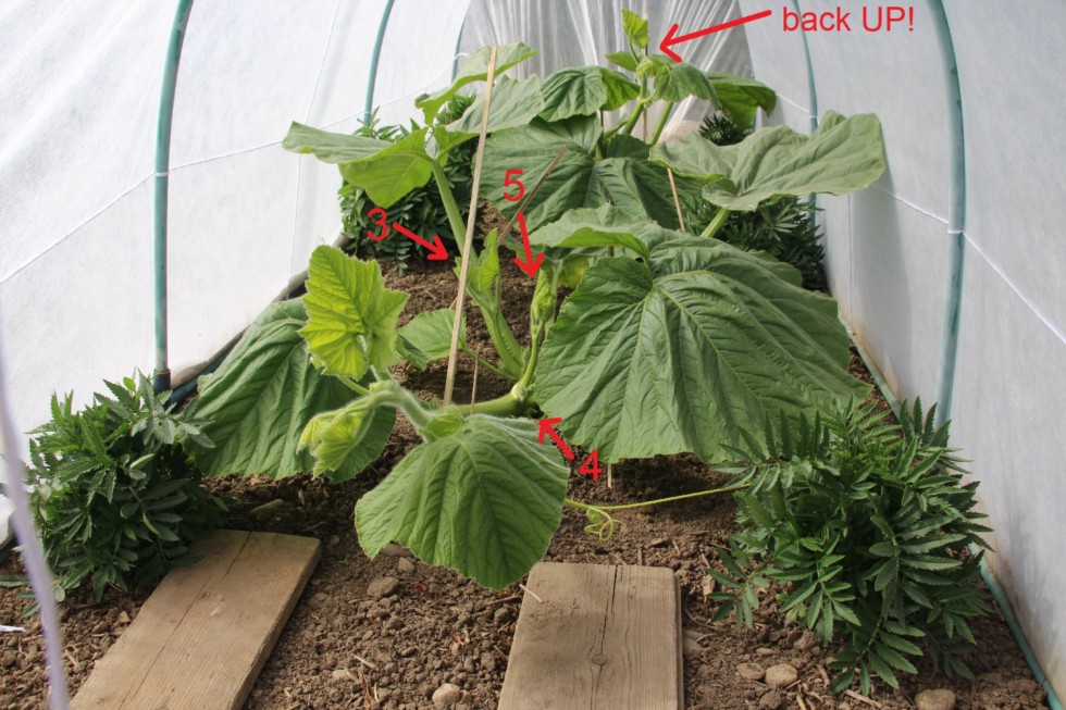 My 1007.5* are the strongest (most brutal) plants this year. The backup plant wants to grow like a tree (no, I'm not talking about the X-mas tree pattern, LOL), and the favorite plant developed some horribly bad upwarts pointing secondaries in the 3rd and 5th leaf node (with one at the 4th pointing into the soil). This year I won't wait any longer (just to see that those secondaries will be crap...as they eventually break), this year I let my plant grow some main vine before it will be allowed to do some secondaries.