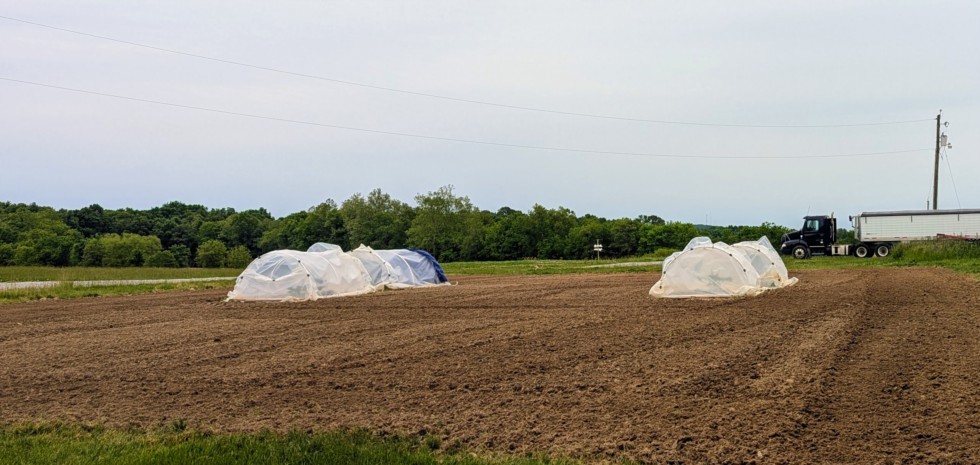 Yesterday and today have been getting ready for the pumpkins to come out of the hoop houses. I have had a big flush of weeds since the initial till for incorporating amendments, yesterday while the plants can still be sealed up in the hoop houses I sprayed with Glyphosate and Glufosinate to kill any emerged weeds. I gave them 24hrs to take in the herbicide before I tilled. I considered applying Dual as a pre-emerge herbicide since it does have a pumpkin label but ultimately decided against it. I also sprayed Ridomil Gold fungicide with my herbicide application. I applied Urea at about 35 units of nitrogen per acre ( as a farmer I have to think in terms of a rate per acre). I applied 9lb urea on 5200sq ft. My thinking this gets me a base rate down then I will make applications of a 28-0-0-5S UAN/ATS blend in my irrigation water for the rest of my nitrogen. I broadcast a granular Imidocloprid product. Today I tilled everything, I was happy with how it worked up, this spring has been a real challenge with very frequent rain. But the patch got dry enough to get a nice result. Plans for the coming week are to get walking boards down, hoop houses off and the wind fence around the patch. The forecast looks to be cooler than average for the better part of a week yet so I am trying to keep the pumpkins in their hoops as long as I can but I think the 2344 Wallace will be out of room by about Wednesday.
