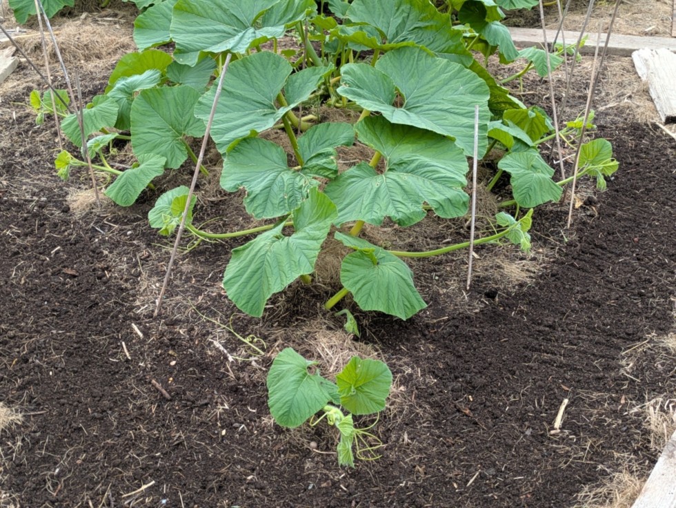 View from the front. We had a couple nights down to 37 F (or 3 degrees C) so I covered with a fleece. Now the nights have warmed up again and we even got half an inch of rain after the driest spring in a century (actually).