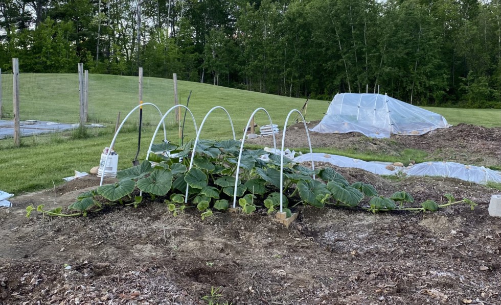 We might be starting to see the end of an awful spring here in New England. The sun was out today. I'm on the 5th hoop house expansion so I took one down today. Its going down to 40 degrees tonight but warmer nights are slowly approaching. 2144 Barron is 12.5 feet long. 2226 Hoornstra is 11 feet and is still in its hoop house. Good side vines on both.