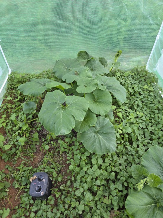 They're trying to escape! Bit of a change in plans, we're going to keep 2 pumpkins at each of our "main" sites and run them out opposite directions. This decision was 2 fold. 1 we didn't want ot move all the "backups" as they had gotten pretty large and 2 the 2 primaries were both growing the "wrong" way. Pic is of the 2239.5 Marintzer, it's busting out and running secondaries.
