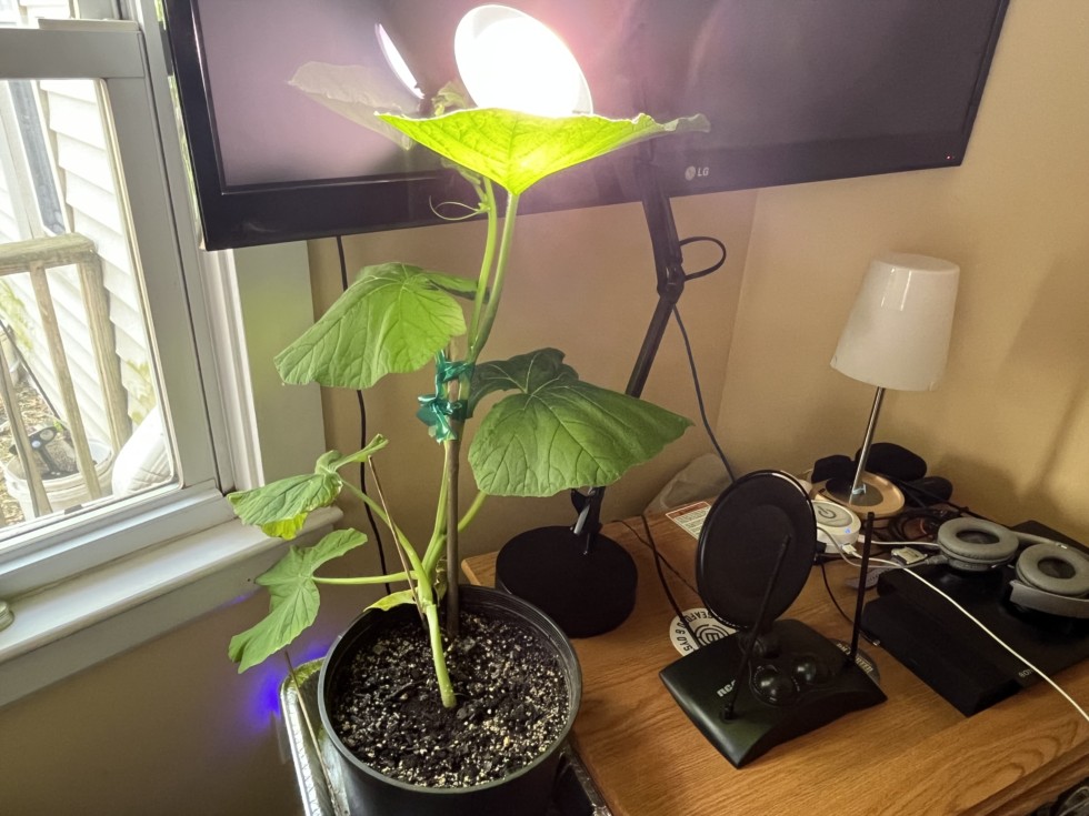 The final indoor picture of the pumpkin plant. It's time to go out into the world.