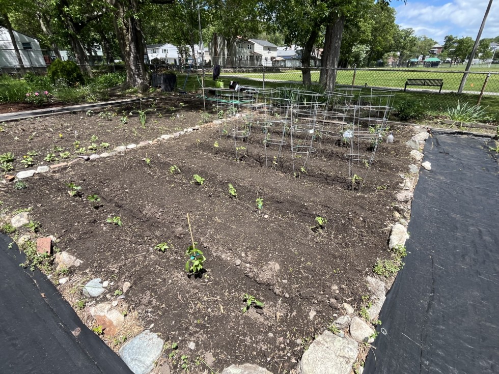 Veggie garden corner shot. The plants have perked up a bit since Wednesday night.