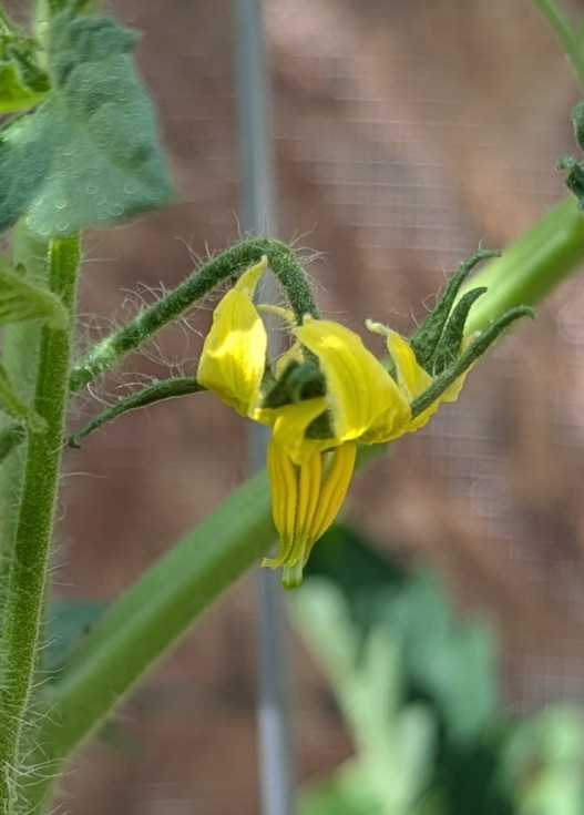 This is a normal flower on the brown plant. It's still not quite perfect but you can see how the anthercones are straight and all pollen will flow over the stigma. Next let's look at a megabloom and see why hand pollination is so important