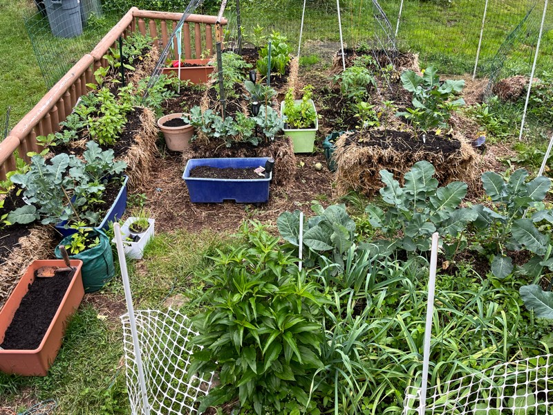 My straw bale garden is loving the cool wet conditions.