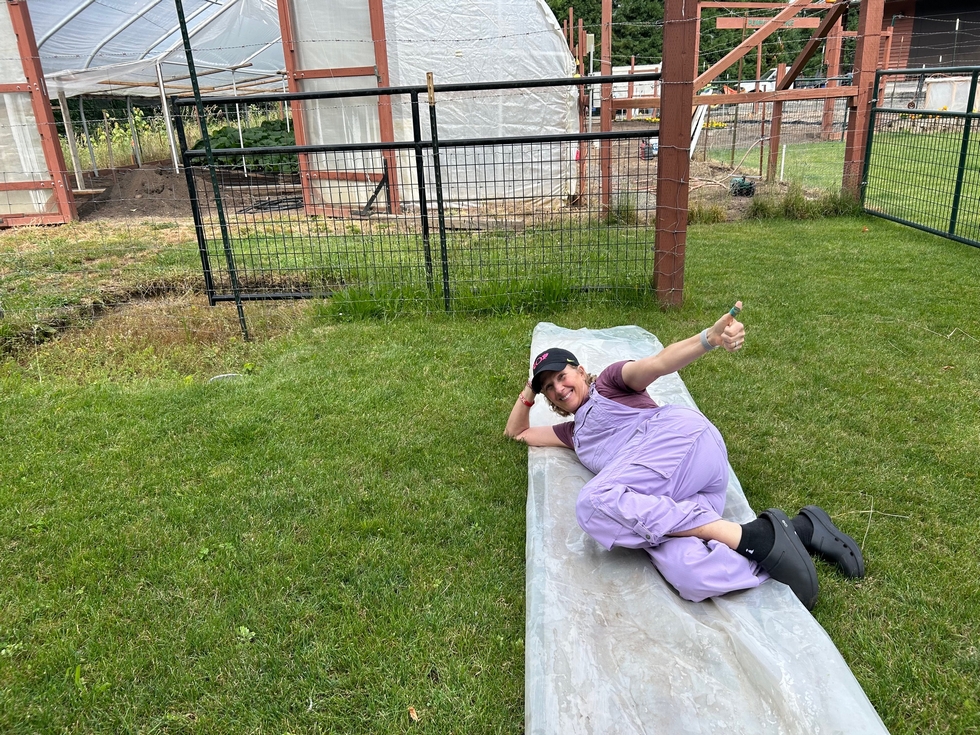I've been seeing all of the help that Dave Chan has been getting from his wife in his patch this year, so I asked my wife, Tracey, to help me for a few minutes today. She helped me fold up some greenhouse plastic I had taken down from my greenhouse-inside-the-greenhouse. She also helped me situate a pumpkin on its growing platform. She followed my directions and I patiently let her help. I'm still amazed that nobody raised their voice & nobody cried! I did promise to take her to dinner so she would not have to cook. Maybe it will be a good year for me in the patch!