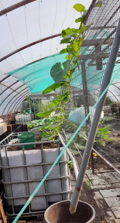 Tunnel 2 is also home to the long gourds. We have 2 Eatons and 2 Klines going, all in 1000 litre cubes as there is a brick floor in this tunnel.