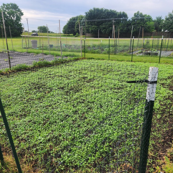 My trifecta mustard crop is up and growing in plot 145. Plantone, bone and blood meal seems to be working. My son and I broadforked the whole plot.