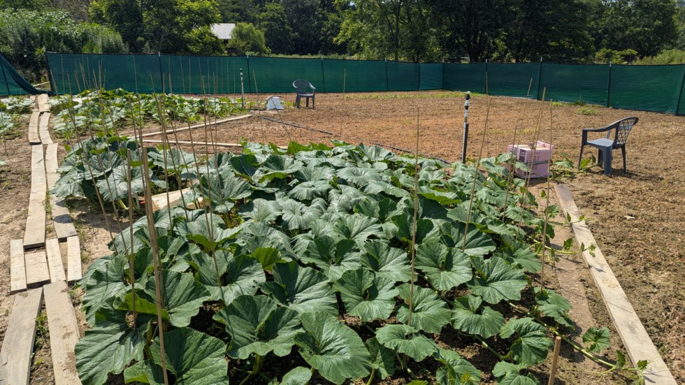 Mostly handling the heat well, a little sunburn is evident on a few leaves. I had to turn the sprinklers off for a little bit to work on a check valve that was allowing water past when the pump was off and after 15min I could see them starting to droop. Trying sprinklers on for 30 sec every 5 min. It is 96 and breezy, the leaves are about dry after 5 min.