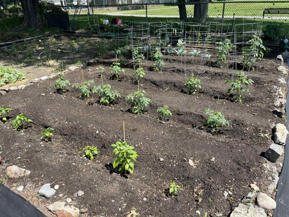 It feels like a new chapter today. When we got to the garden this morning it was 74 degrees. Within a few minutes the heat really hit. We have some small Sungold tomatoes and hot peppers.