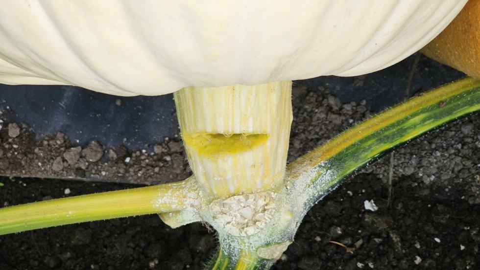 The 1st if going. I read somewhere that any pumpkin should be terminated slowly so as not to "shock" the other ones. So I'm cutting abpout 1/4 of the stem per day for 4 days.