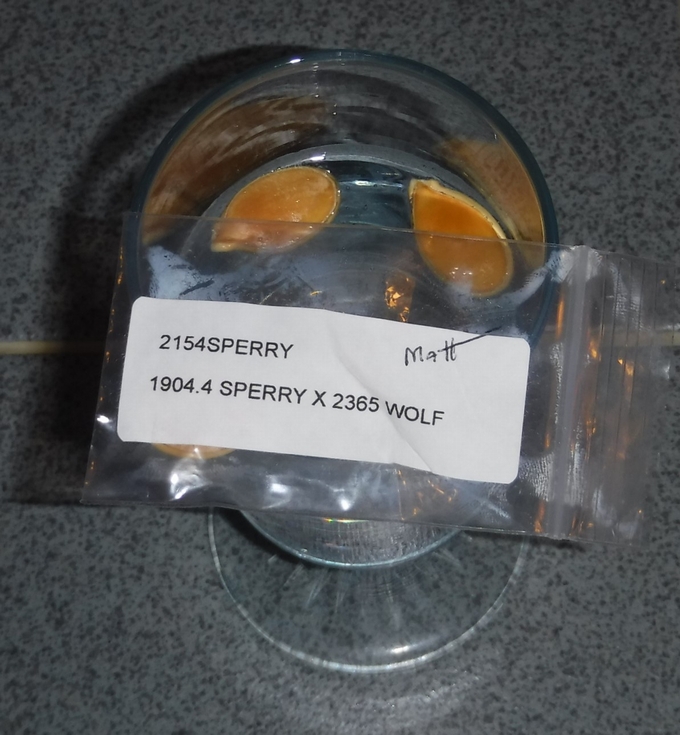 This is the seed selected for this year the 2154 Sperry '23 (F: 1904.4 Sperry x M: 2365 Wolf), It produced two impressive pumpkins last year one over 2,100 pounds by a new grower and the pumpkin had fantastic orange color. The other had some grower error, but the shape was very symmetrical and the grower spoke highly of the plant. It will be interesting to see what it will produce this year.