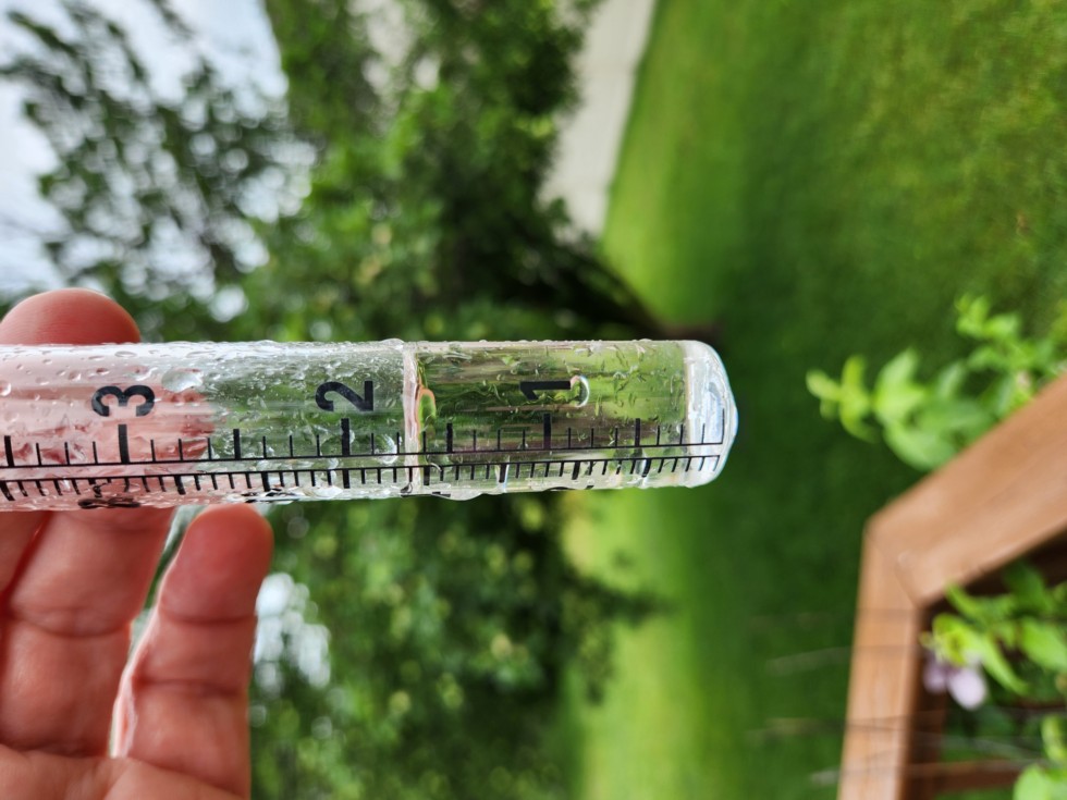 We got 1 5/8" of rain in < 90 minutes yesterday afternoon. Luckily, the wind was minimal. Following the rain the secondaries exploded with growth again. The main grew about 18". I've got some potential female blooms but I am hoping for something better.